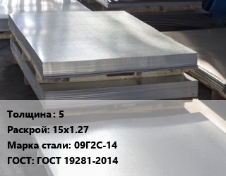 Лист горячекатаный 5 15х1.27 Сталь: 09Г2С-14 ГОСТ: ГОСТ 19281-2014