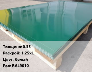 Лист с полимерным покрытием 0.35 1.25хL белый RAL9010