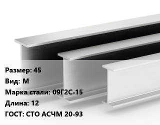 Двутавровая балка 45 М 09Г2С-15 L=12 ГОСТ: СТО АСЧМ 20-93