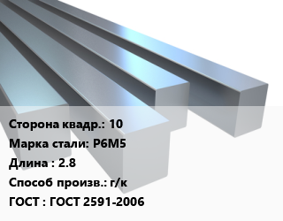 Квадрат стальной 10 Сталь: Р6М5 L=2.8 г/к ГОСТ 2591-2006