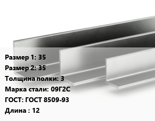 Уголок горячекатаный 35х35х3 Сталь: 09Г2С ГОСТ: ГОСТ 8509-93 L=12