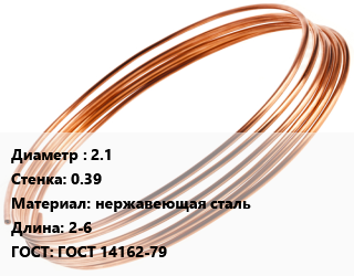 Труба капиллярная 2.1 s=0.39 нержавеющая сталь L=2-6 ГОСТ: ГОСТ 14162-79