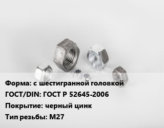 Гайка с шестигранной головкой ГОСТ Р 52645-2006 черный цинк М27