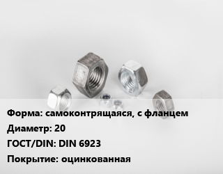 Гайка самоконтрящаяся, с фланцем D=20 DIN 6923 оцинкованная