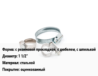 Хомут с резиновой прокладкой, с дюбелем, с шпилькой D=1 1/2" стальной оцинкованный, шт цена от 127.81 Р / шт, где купить, условия доставки в Витебске и Витебской области