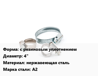 Хомут с резиновым уплотнением D=4" нержавеющая сталь Сталь: А2, шт цена от 1 188 Р / шт, где купить, условия доставки в Витебске и Витебской области