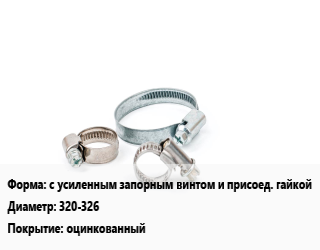 Хомут с усиленным запорным винтом и присоед. гайкой D=320-326 оцинкованный, упаковка 100 шт цена от 1 527 Р / шт, где купить, условия доставки в Витебске и Витебской области