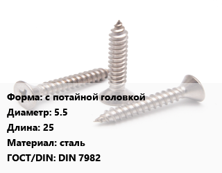 Саморез с потайной головкой D=5.5 L=25 сталь ГОСТ: DIN 7982, упаковка 1000 шт цена от 1 847 Р / кг, где купить, условия доставки в Витебске и Витебской области