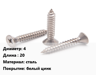 Саморез 4 L=20 сталь белый цинк, кг, универсальный цена от 185.29 Р / кг, где купить, условия доставки в Витебске и Витебской области