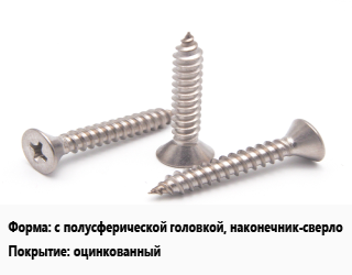 Саморез с полусферической головкой, наконечник-сверло оцинкованный, упаковка 850 шт цена от 252 Р / кг, где купить, условия доставки в Витебске и Витебской области