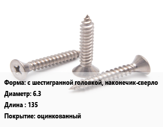 Саморез с шестигранной головкой, наконечик-сверло D=6.3 L=135 оцинкованный