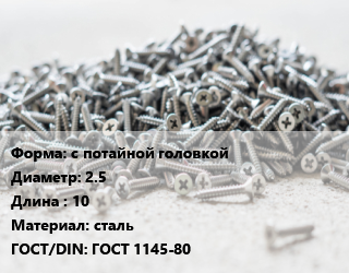 Шуруп с потайной головкой 2.5х10 сталь ГОСТ: ГОСТ 1145-80