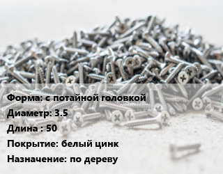 Шуруп с потайной головкой 3.5х50 белый цинк по дереву, упаковка 6000 шт цена от 2 039 Р / кг, где купить, условия доставки в Витебске и Витебской области