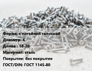 Шуруп с потайной головкой 4х18-20 сталь без покрытия ГОСТ: ГОСТ 1145-80