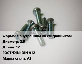 Винт с внутренним шестигранником 2.5х12 DIN 912 Сталь: A2, цена за шт, кг цена от 8.28 Р / кг, где купить, условия доставки в Витебске и Витебской области