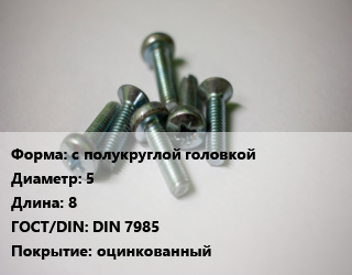 Винт с полукруглой головкой 5х8 DIN 7985 оцинкованный