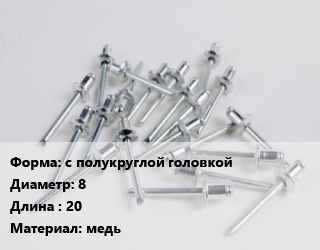 Заклепка с полукруглой головкой 8х20 медь, кг цена от 222.95 Р / шт, где купить, условия доставки в Витебске и Витебской области