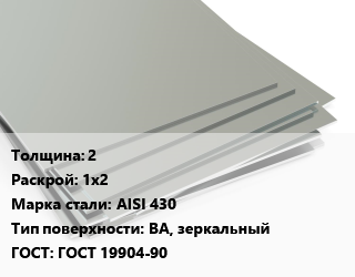 Лист нержавеющий 2 1х2 Сталь: AISI 430 Тип:BA, зеркальный ГОСТ 19904-90