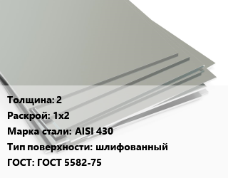 Лист нержавеющий 2 1х2 Сталь: AISI 430 Тип:шлифованный ГОСТ 5582-75