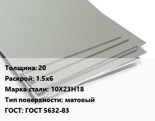 Лист нержавеющий 20 1.5х6 Сталь: 10Х23Н18 Тип:матовый ГОСТ 5632-83