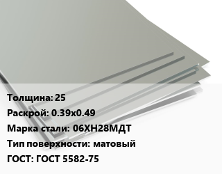 Лист нержавеющий 25 0.39х0.49 Сталь: 06ХН28МДТ Тип:матовый ГОСТ 5582-75