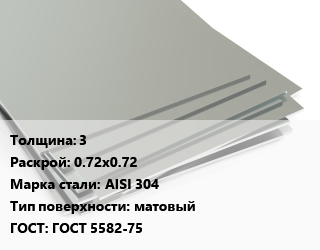 Лист нержавеющий 3 0.72х0.72 Сталь: AISI 304 Тип:матовый ГОСТ 5582-75