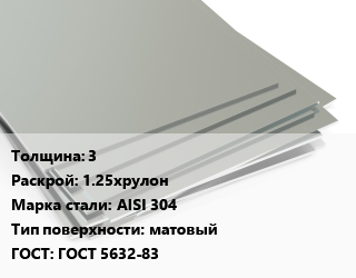 Лист нержавеющий 3 1.25хрулон Сталь: AISI 304 Тип:матовый ГОСТ 5632-83