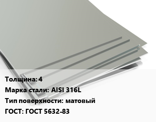 Лист нержавеющий 4 Сталь: AISI 316L Тип:матовый ГОСТ 5632-83