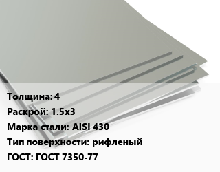 Лист нержавеющий 4 1.5х3 Сталь: AISI 430 Тип:рифленый ГОСТ 7350-77