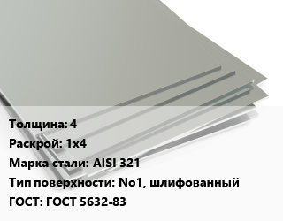 Лист нержавеющий 4 1х4 Сталь: AISI 321 Тип:No1, шлифованный ГОСТ 5632-83