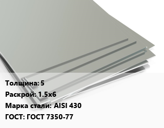 Лист нержавеющий 5 1.5х6 Сталь: AISI 430 ГОСТ 7350-77