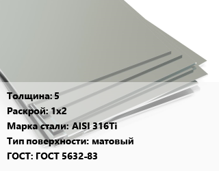 Лист нержавеющий 5 1х2 Сталь: AISI 316Ti Тип:матовый ГОСТ 5632-83