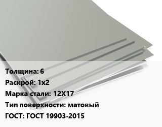 Лист нержавеющий 6 1х2 Сталь: 12Х17 Тип:матовый ГОСТ 19903-2015