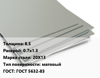 Лист нержавеющий 8.5 0.7х1.3 Сталь: 20Х13 Тип:матовый ГОСТ 5632-83