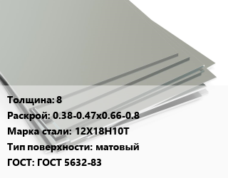 Лист нержавеющий 8 0.38-0.47х0.66-0.8 Сталь: 12Х18Н10Т Тип:матовый ГОСТ 5632-83