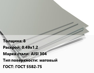 Лист нержавеющий 8 0.49х1.2 Сталь: AISI 304 Тип:матовый ГОСТ 5582-75