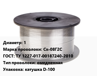 Проволока сварочная 1 Сталь: Св-08Г2С ГОСТ: ТУ 1227-017-00187240-2010 омедненная катушка D-100