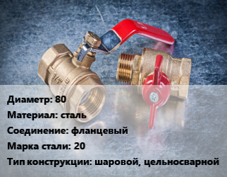 Кран металлический 80 сталь фланцевый Сталь: 20 шаровой, цельносварной