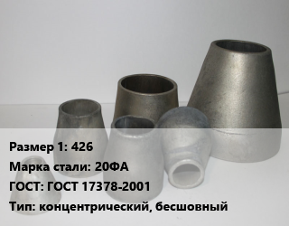 Переход стальной 426 Марка: 20ФА ГОСТ: ГОСТ 17378-2001 концентрический, бесшовный