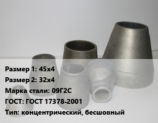 Переход стальной 45х4х32х4 Марка: 09Г2С ГОСТ: ГОСТ 17378-2001 концентрический, бесшовный