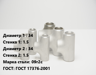 Тройник стальной 34х1.5 -34х1.5 Сталь: 09г2с ГОСТ: ГОСТ 17376-2001