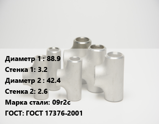 Тройник стальной 88.9х3.2 -42.4х2.6 Сталь: 09г2с ГОСТ: ГОСТ 17376-2001