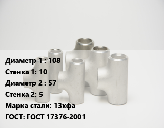 Тройник стальной 108х10 -57х5 Сталь: 13хфа ГОСТ: ГОСТ 17376-2001